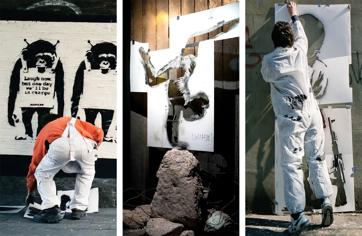 Stencil Art bezeichnet eine Technik, bei der Motive in ein Material wie Papier oder Karton geschnitten und anschließend Farbe über die Schablone aufgetragen wird, um das Bild auf eine Oberfläche zu übertragen. Diese Methode ermöglicht die schnelle Vervielfältigung auch komplexer Designs. Stencil Art gewann ab den späten 1970er-Jahren zunehmend an Popularität, besonders in Paris, wo Künstlerinnen und Künstler die Technik als Mittel für politische Kommentare und gesellschaftliche Kritik einsetzten. Der größte Vorteil der Schablonentechnik liegt in ihrer Fähigkeit, schnell sehr detaillierte und wiederholbare Bilder zu erzeugen, was sie zu einem wirkungsvollen Medium für solche Botschaften macht. Die Präzision und Vielseitigkeit von Schablonen ermöglichen komplexe und vielschichtige Werke, die im öffentlichen Raum tiefgehende Aussagen vermitteln können.